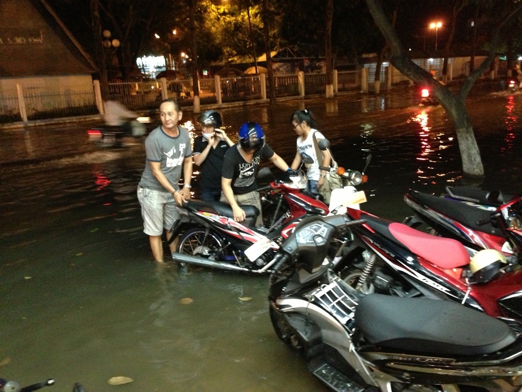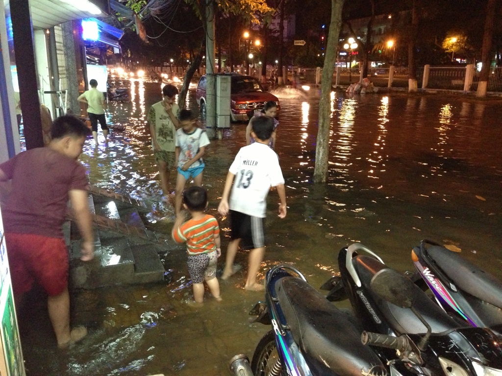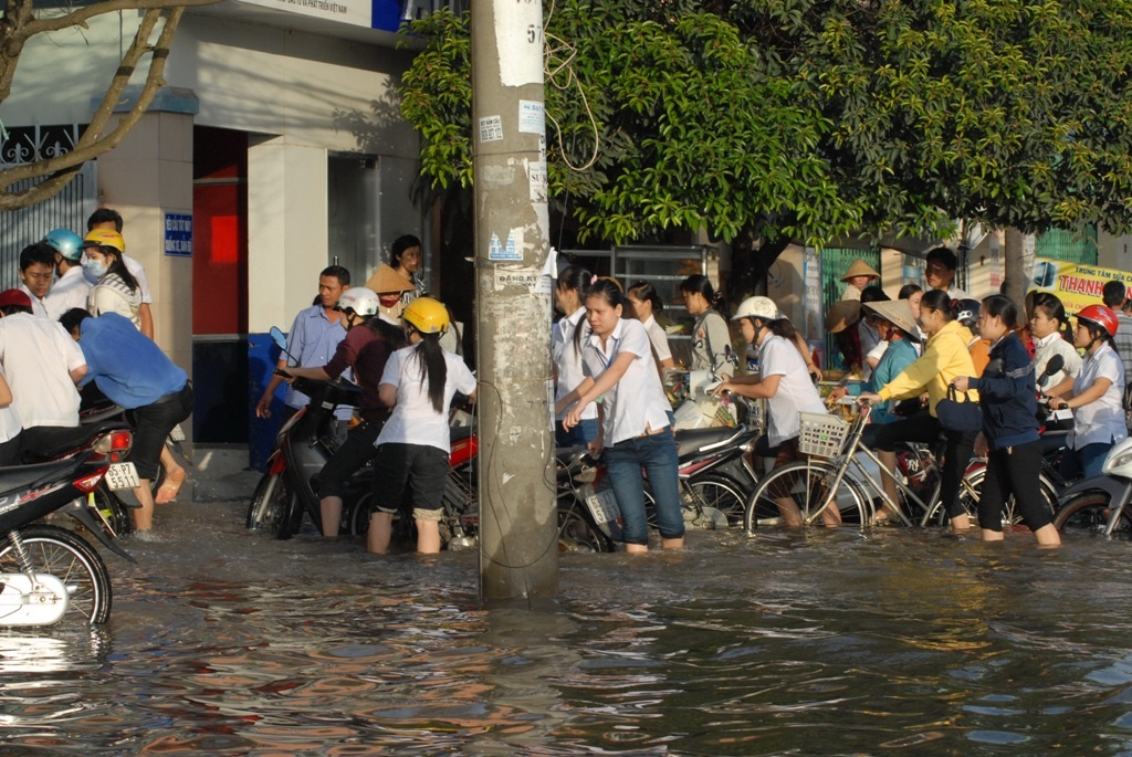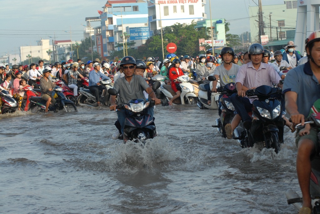 | Thủy triều dâng một ngày 2 lần vào buổi sáng từ 6h - 8h và buổi chiều từ 16h30 - 19h, đúng vào giờ cao điểm khiến xảy ra ùn tắc cục bộ. |