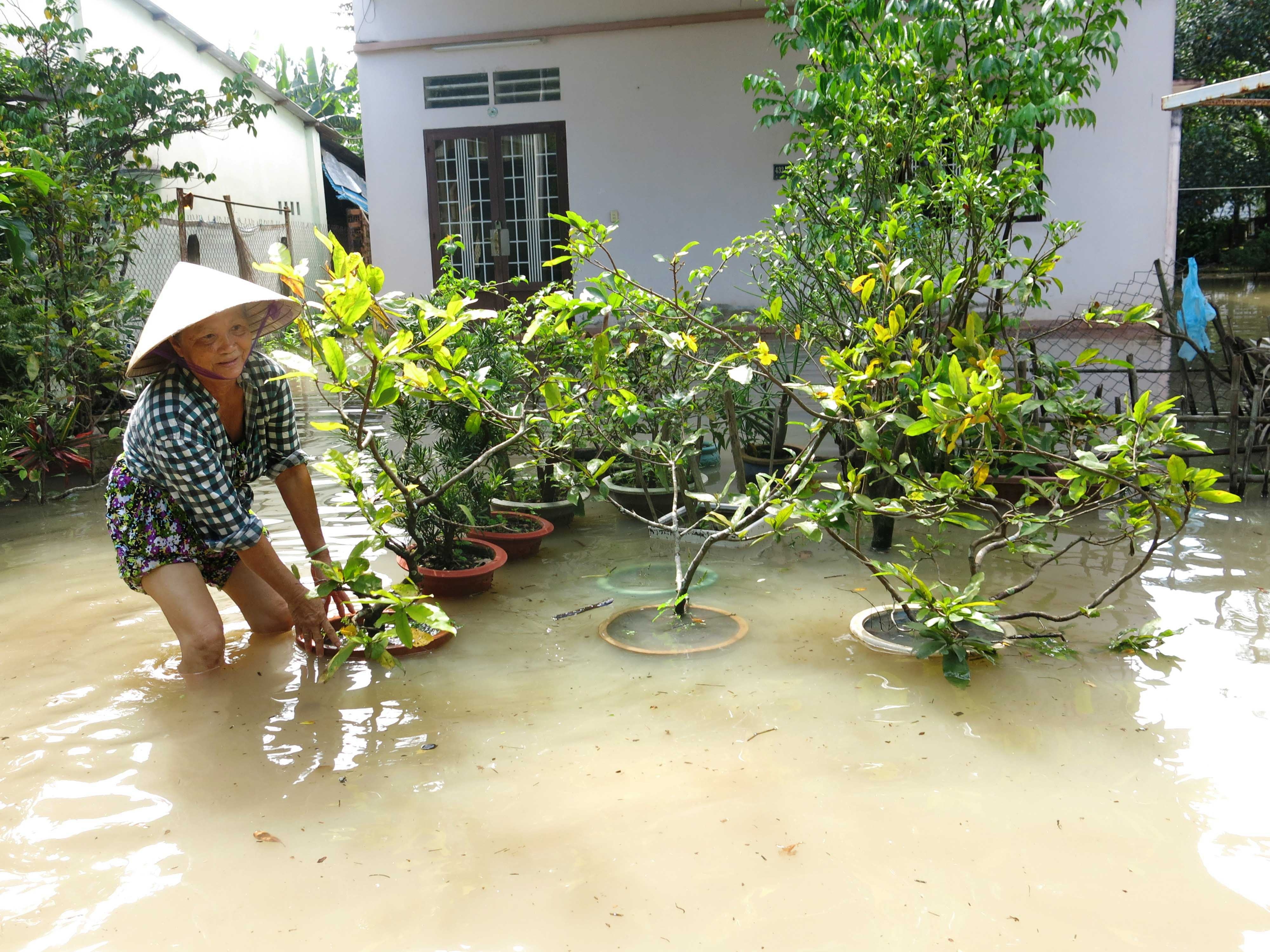 Chiều tối 21/10, triều cường ngập sâu gần nửa mét, người dân phải đóng cửa nhà để di tản. Các vườn cây ăn trái, mai vàng ở ven sông Sài Gòn thuộc P.Chánh Nghĩa bị ngâm nước nhiều ngày, có nguy cơ chết.