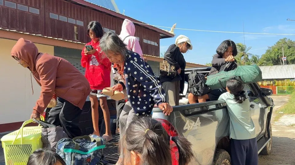 Người dân Thái Lan tại các tỉnh biên giới giáp Campuchia tiến hành sơ tán khi giao tranh bùng phát hôm 7/12/2025. Ảnh: Chính phủ Thái Lan
