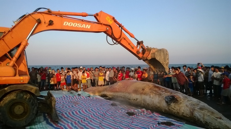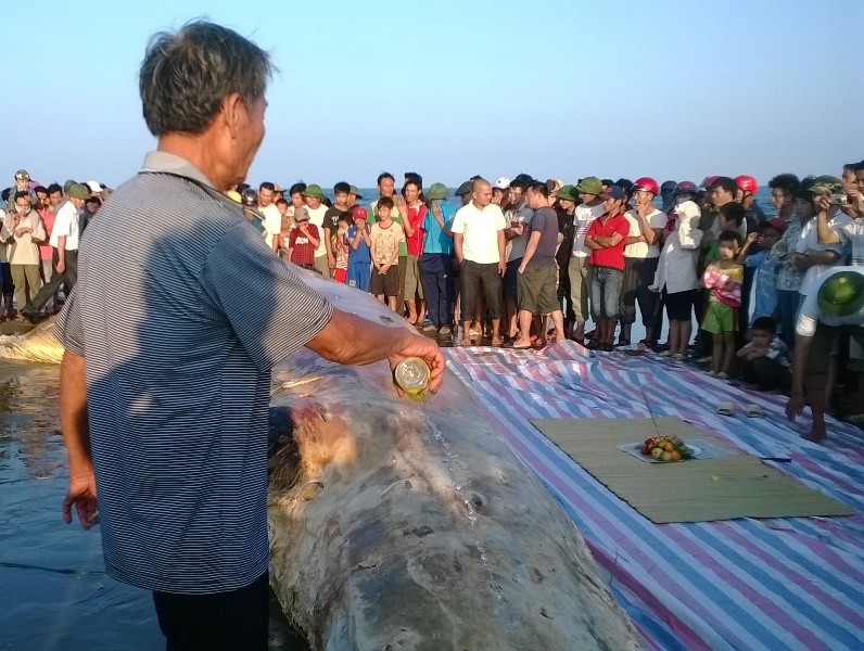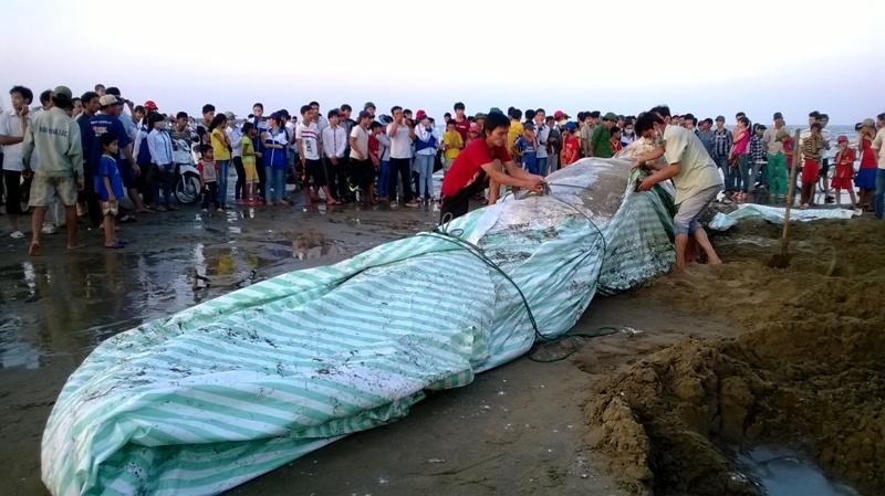 Sau khi xin ý kiến lãnh đạo cấp trên, chiều ngày 1/11, chính quyền và nhân dân xã Hải An (huyện Tĩnh Gia, Thanh Hóa) đã tổ chức lễ chôn cất xác cá voi xấu số dạt vào bờ biển, được người dân phát hiện ra trước đó.