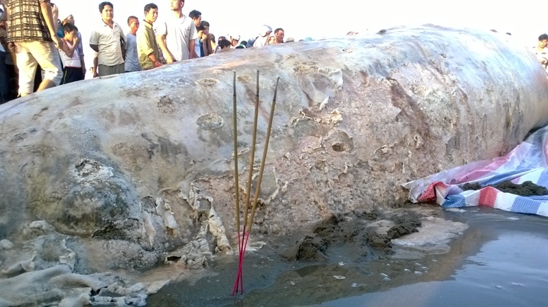 | Khi được phát hiện, xác cá đang trong quá trình phân hủy mạnh, có chiều dài khoảng 13m, trọng lượng hàng chục tấn. |
