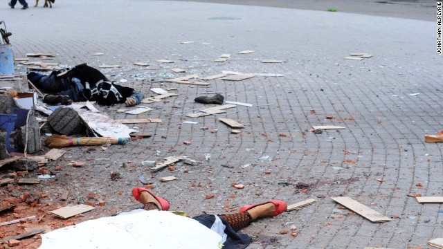 | Còn với những người ở lại, đạn bom và chết chóc dường như đã quá quen thuộc. Sau chuyến công tác kéo dài nhiều tháng, nhiếp ảnh gia Alpeyrie đã công bố nhiều bức ảnh gây sốc, như hình chụp xác chết không còn nguyên vẹn của một chủ cửa hàng ngay trước cơ sở kinh doanh của cô. |
