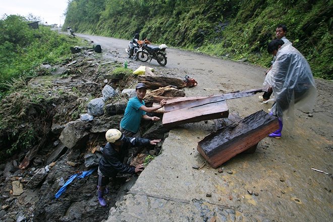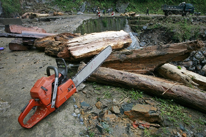 | Người dân tranh thủ đi vớt những khúc gỗ lớn để bán cho các xưởng sản xuất gỗ. |