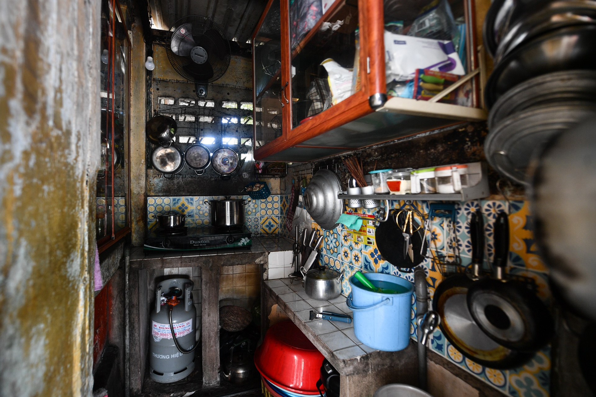 | Nhiều khu vực như nhà vệ sinh, nhà bếp nhìn khá lụp xụp, xuống cấp theo thời gian. Tuy nhiên, ông Thái cùng gia đình vẫn giữ nguyên thiết kế cũ và sắp xếp đồ đạc một cách ngăn nắp. |