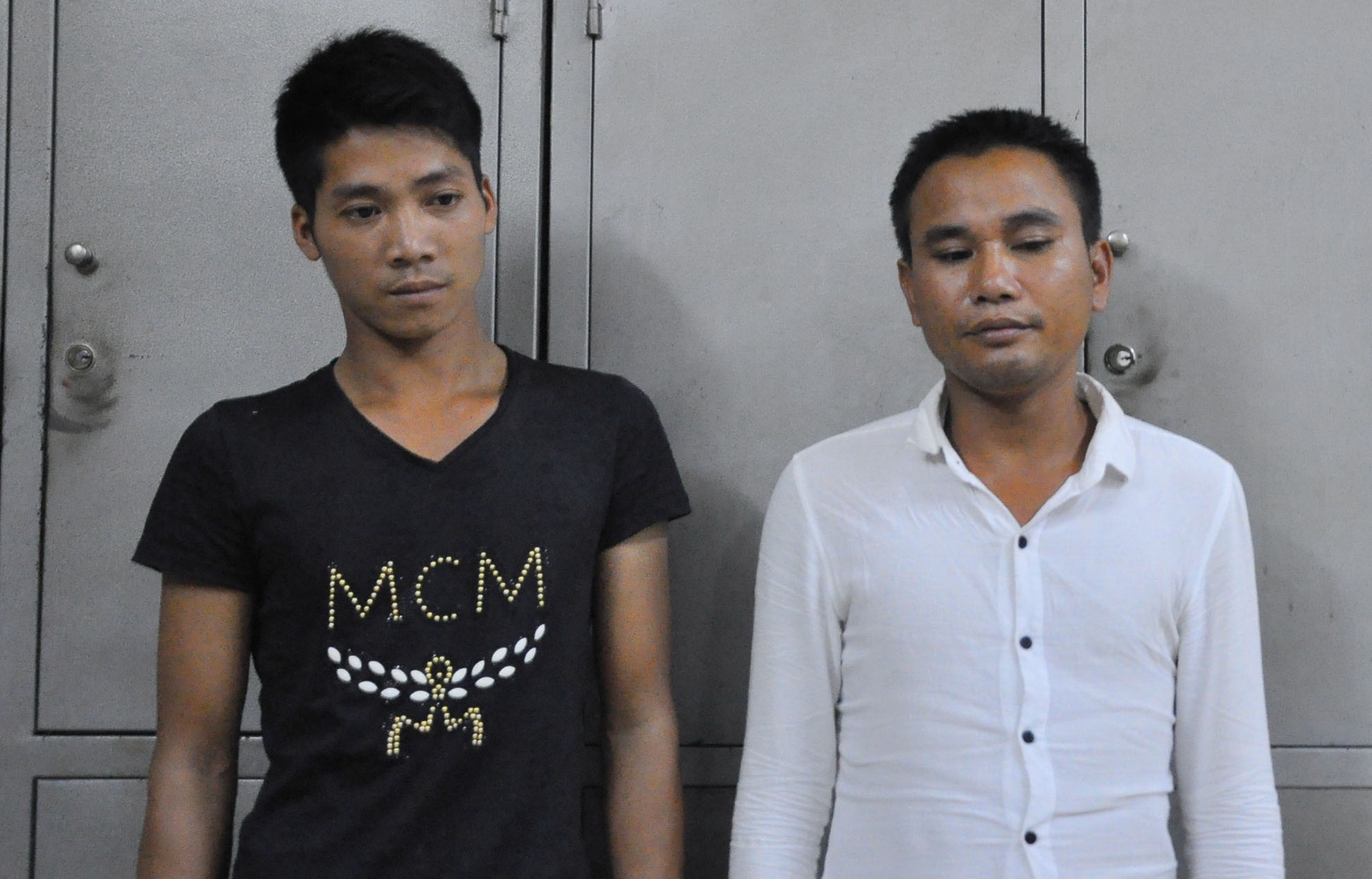 | Phạm Văn Quỳnh (ảnh trái) và Phạm Văn Chung (phải) tại cơ quan công an quận Hoàn Kiếm ngày 12/9. Ảnh: Hoàn Nguyễn. |