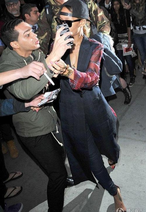 | Rihanna từng bị fan cuồng tấn công vì trang phục phá cách. |