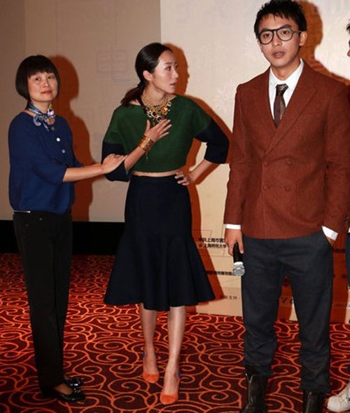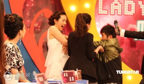 | Con gái nuôi của Châu Nhuận Phát - Mạnh Thiên bị một người đàn ông lao lên sân khấu bóp vòng 1. |