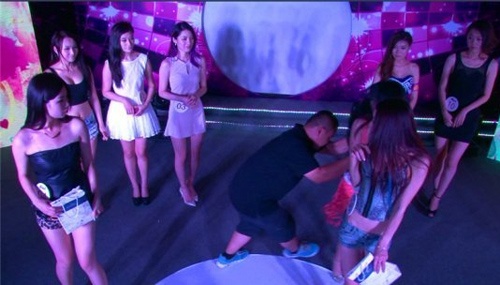 | Ngô Hy Nhi sợ hãi vì bị một khán giả quá khích nhảy lên sàm sỡ "kiểm tra" vòng 1. |