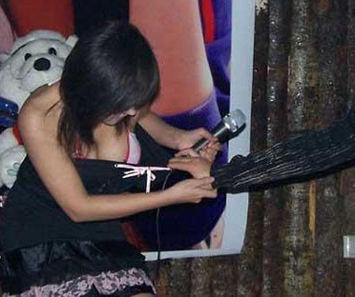 | Khi đang say sưa giới thiệu về album mới, Chung Gia Nghi đã bị một fan cuồng chạy lên sân khấu và kéo tuột cả áo của cô làm hở nội y. |