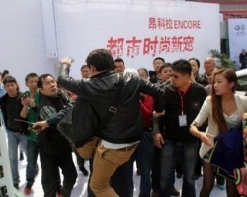 | Dương Đồng Thư chống trả kịch liệt trước sự quá khích của fan nam. |