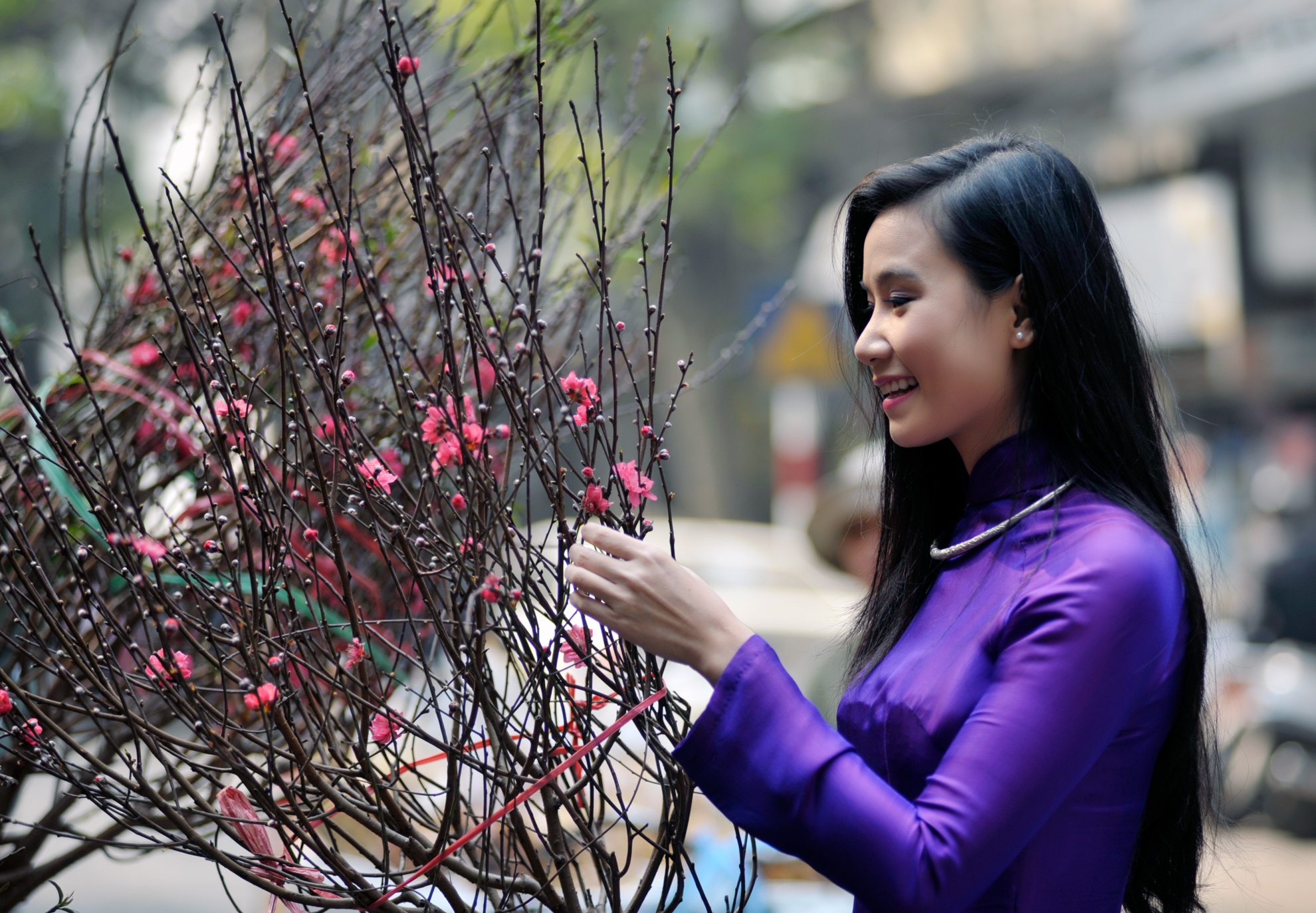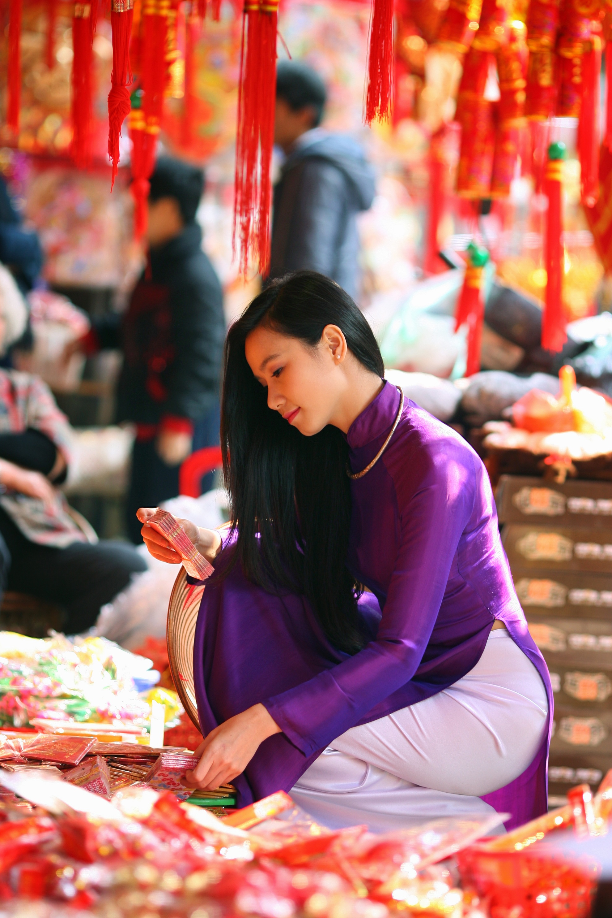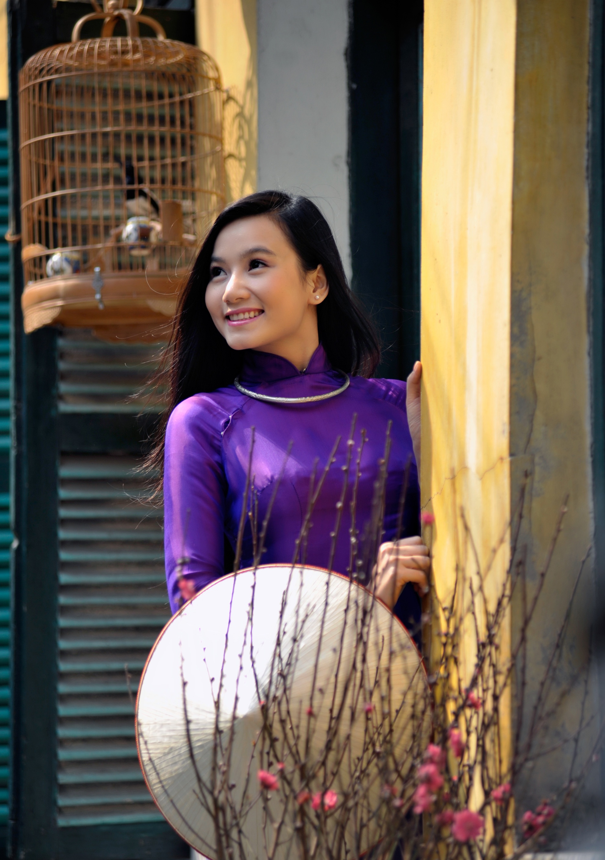 Nữ diễn viên Lương Giang xinh đẹp, dịu dàng trong tà áo dài tím khi dạo phố trong những ngày giáp Tết.