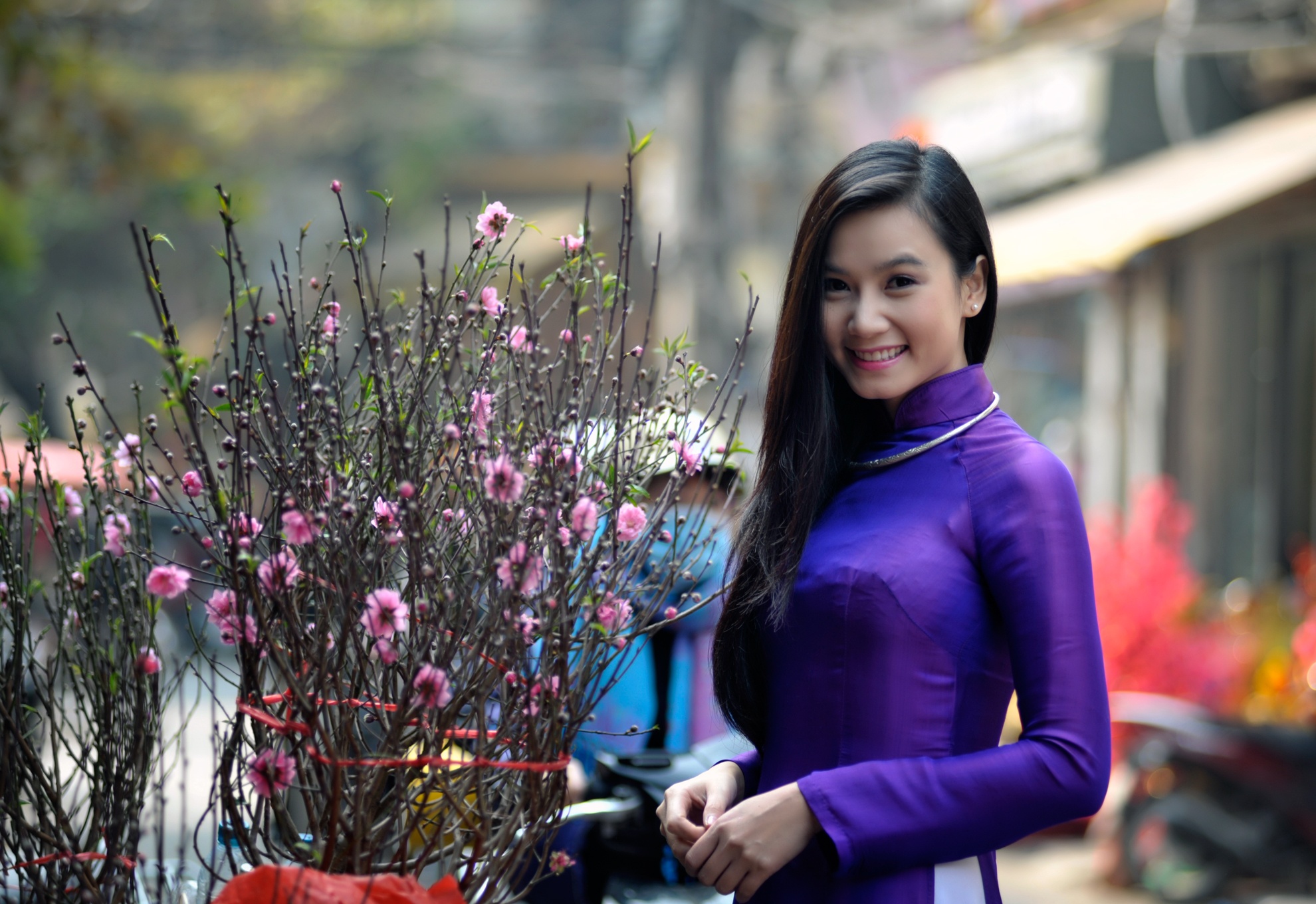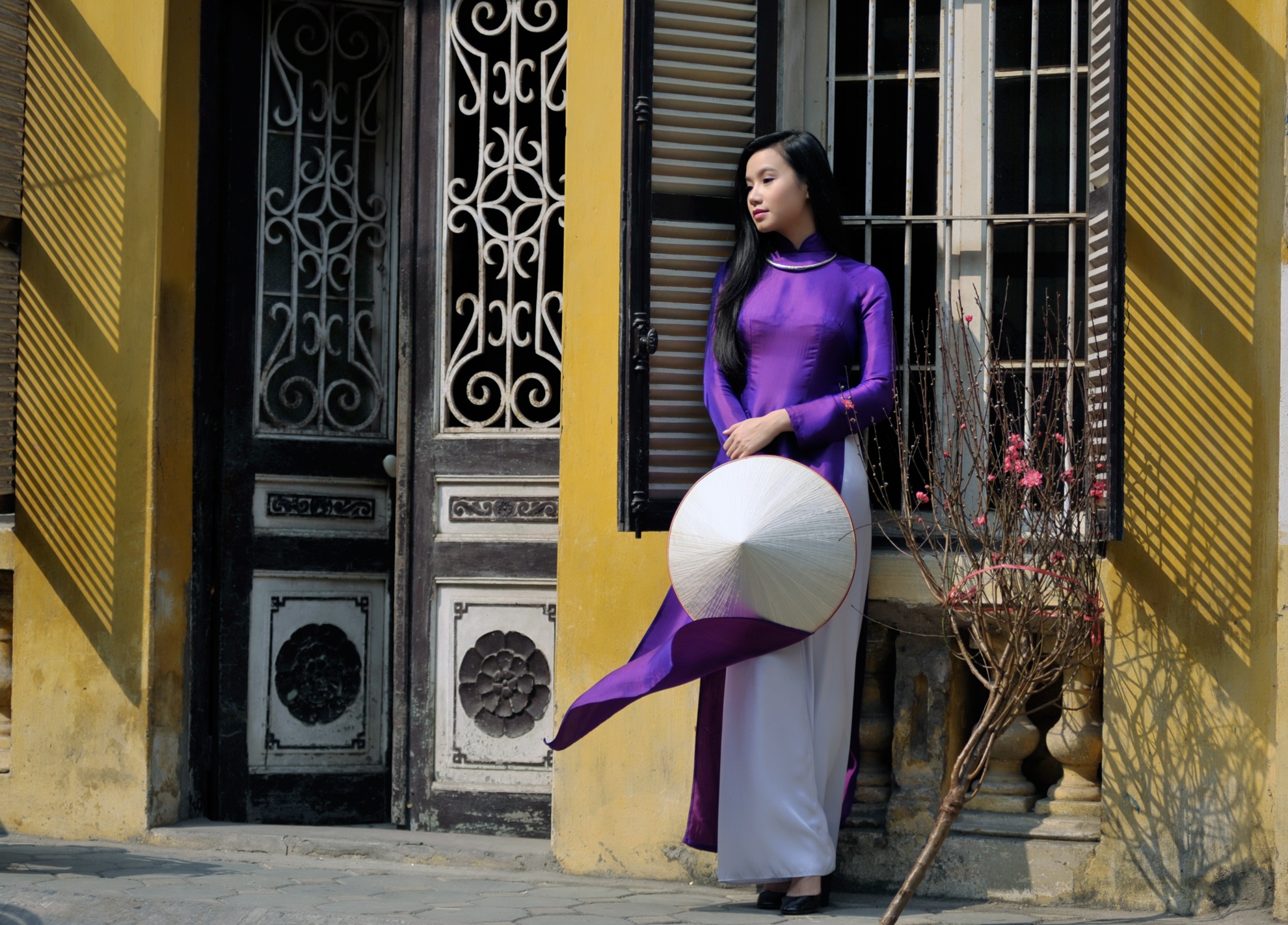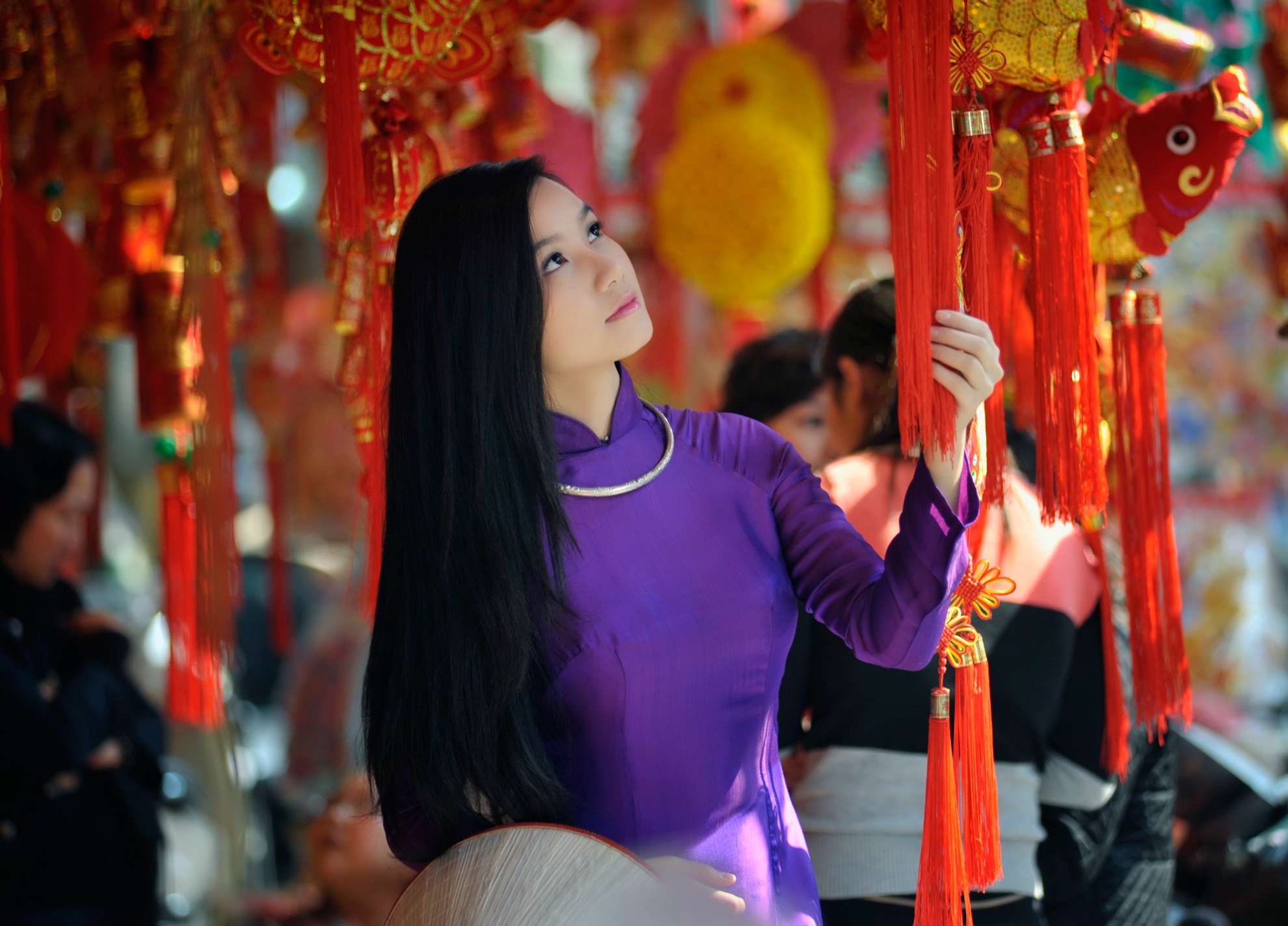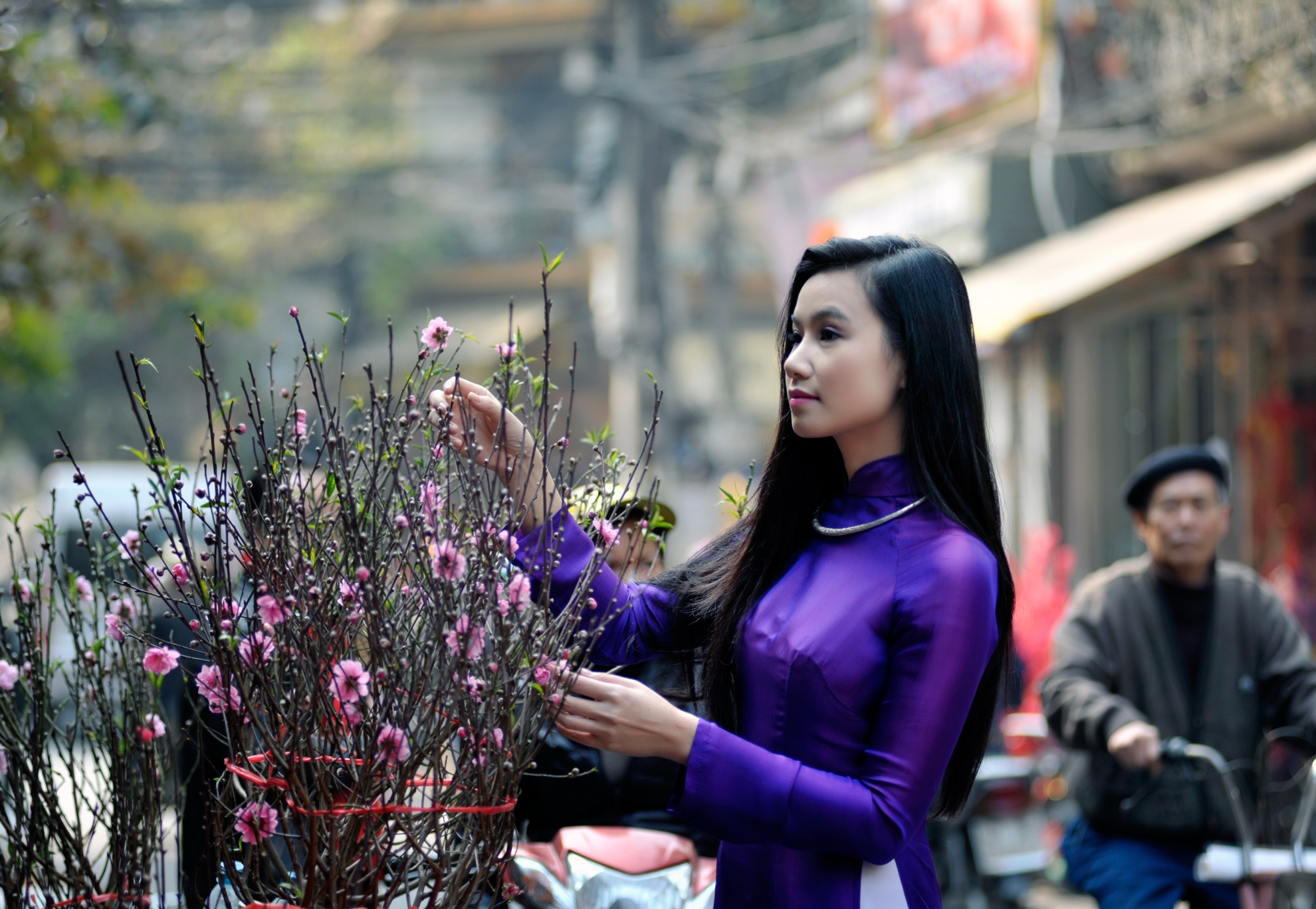 Nữ diễn viên Lương Giang xinh đẹp, dịu dàng trong tà áo dài tím khi dạo phố trong những ngày giáp Tết.