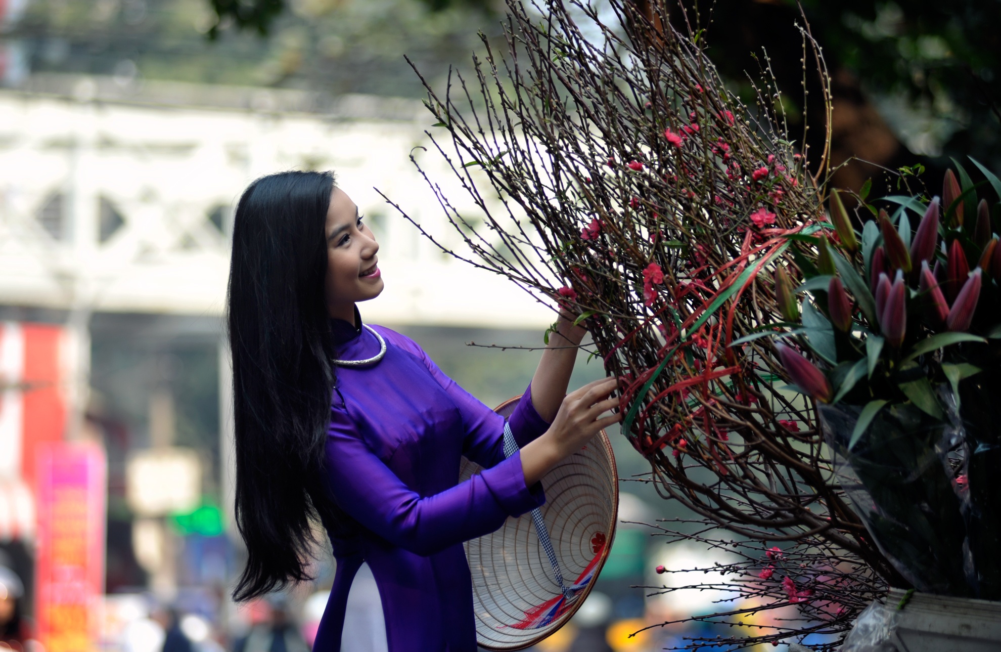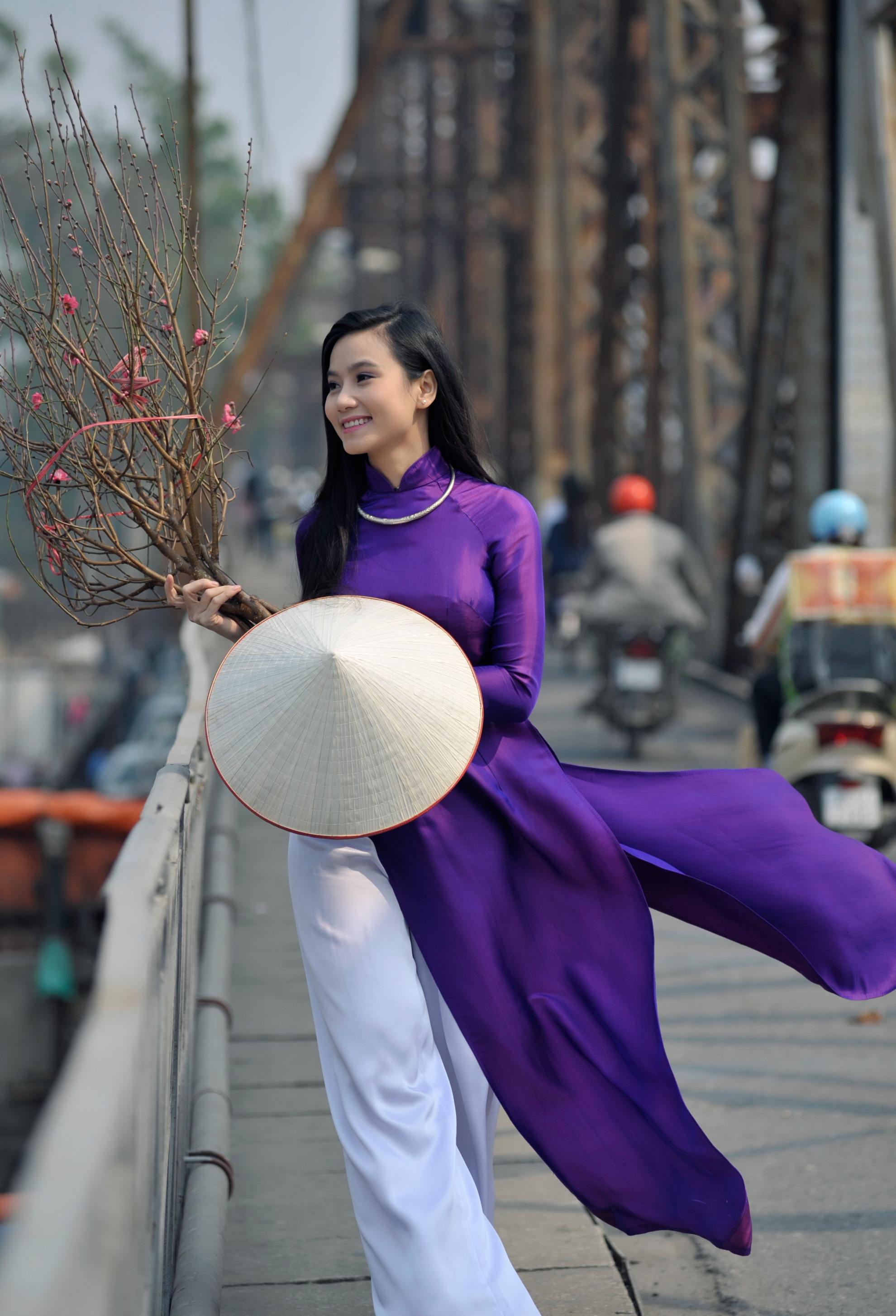 Người đẹp tạo dáng trên cầu Long Biên những ngày giáp Tết.