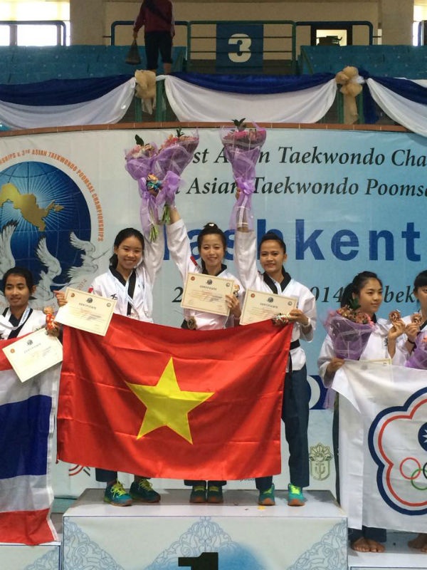 | Đồng đội nữ quyền taekwondo thi đấu thành công tại giải vô địch châu Á. Ảnh: FBNV. |