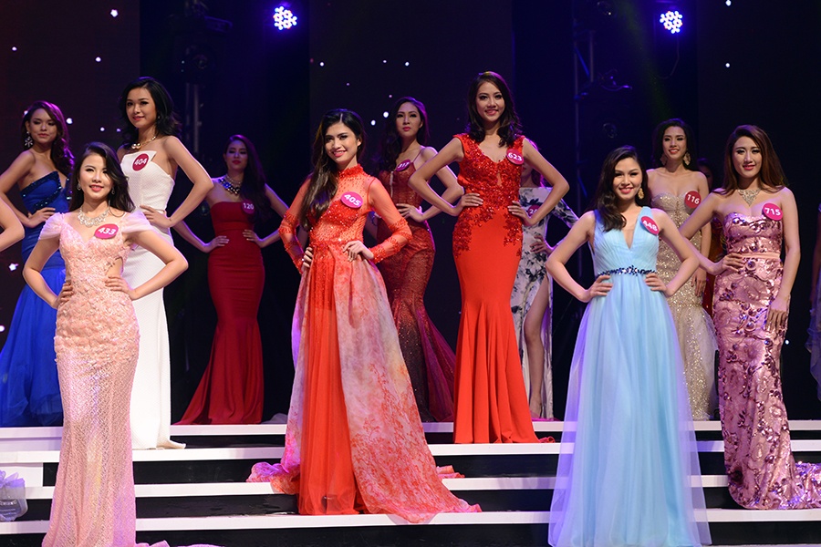 Sáng 15/9, hơn 60 người đẹp có buổi tập luyện, tổng duyệt trên sân nhà hát Crown Center tại Diamond Bay - Nha Trang, tỉnh Khánh Hòa.