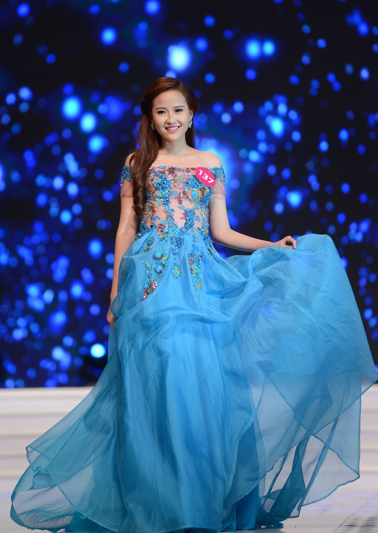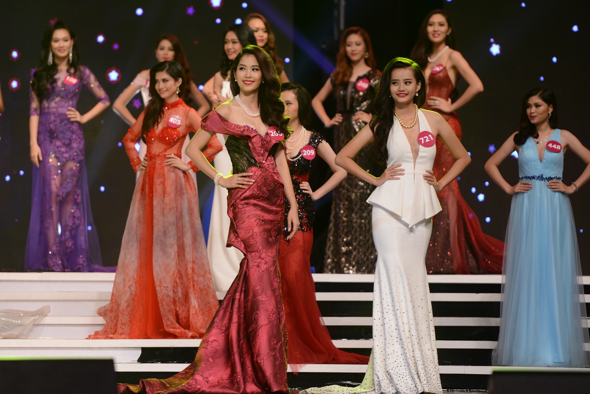 Sau phần thi bikini nóng bỏng, 60 người đẹp khoe nhan sắc kiêu sa, sang trọng với trang phục dạ hội.