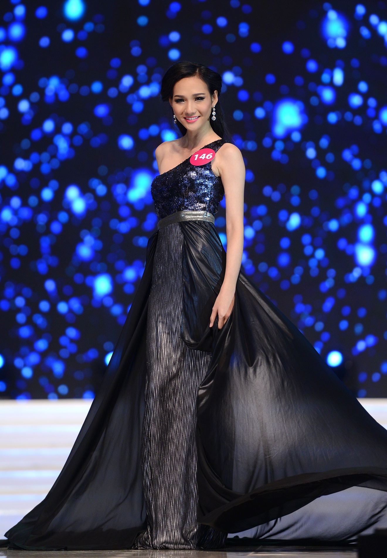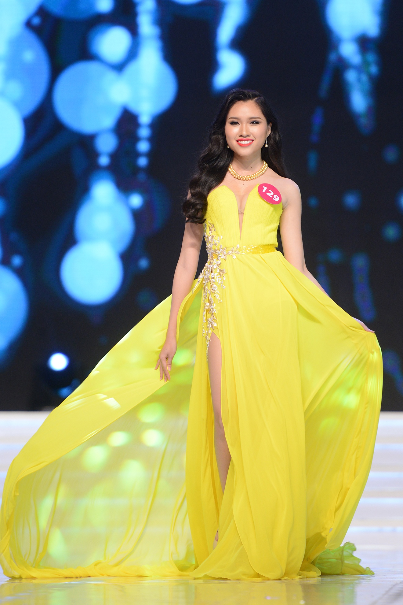 | Khánh Ngân là thí sinh cuối cùng được xướng tên trong danh sách 45 người đẹp vòng chung kết. |