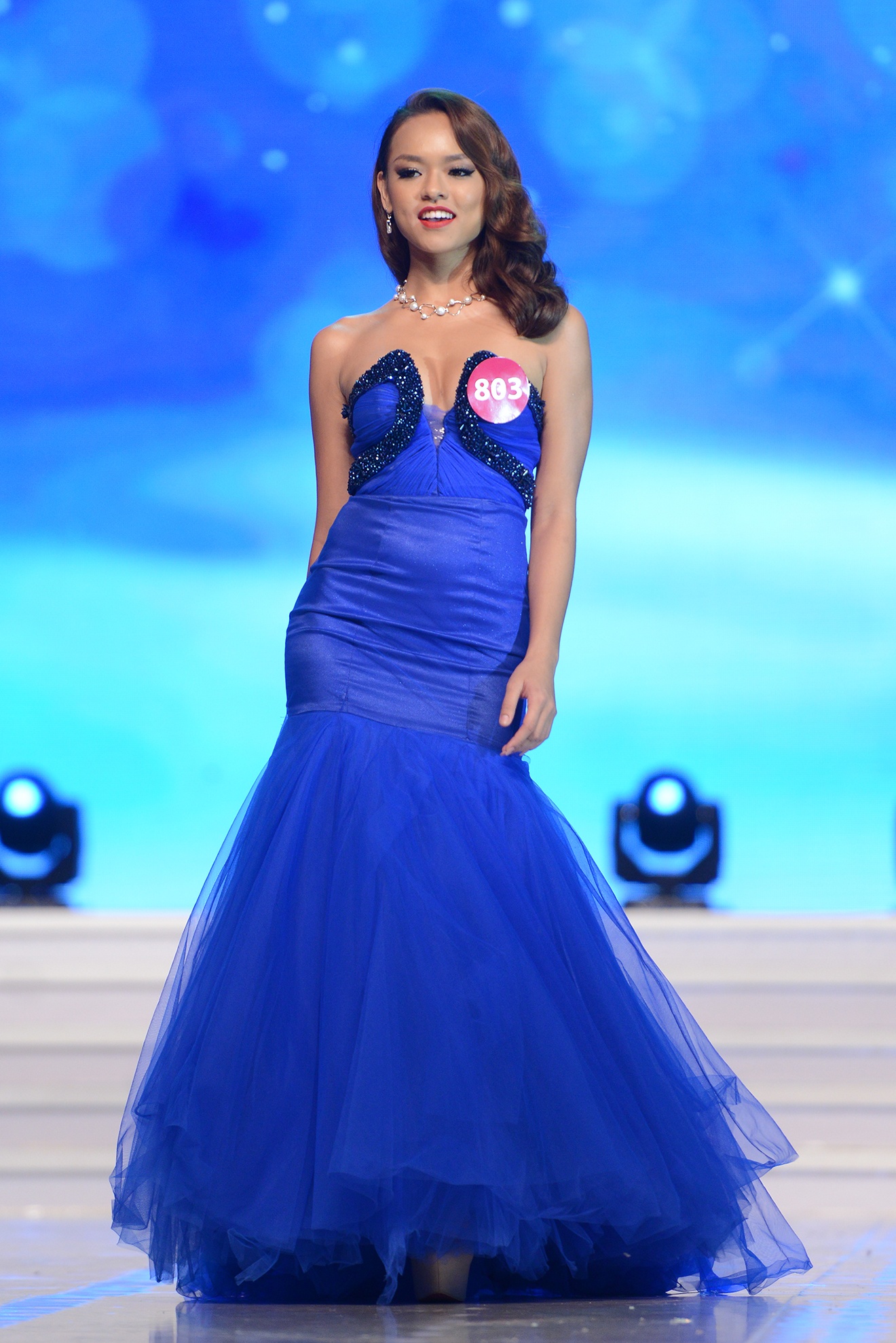 | Người đẹp sở hữu chiều cao 1,8 m - Trương Thị Diệu Ngọc - đang là thí sinh nổi bật của mùa giải. Lợi thế chiều cao, hình thể cân đối giúp cô tự tin trình diễn bikini và đầm đuôi cá ôm sát. |