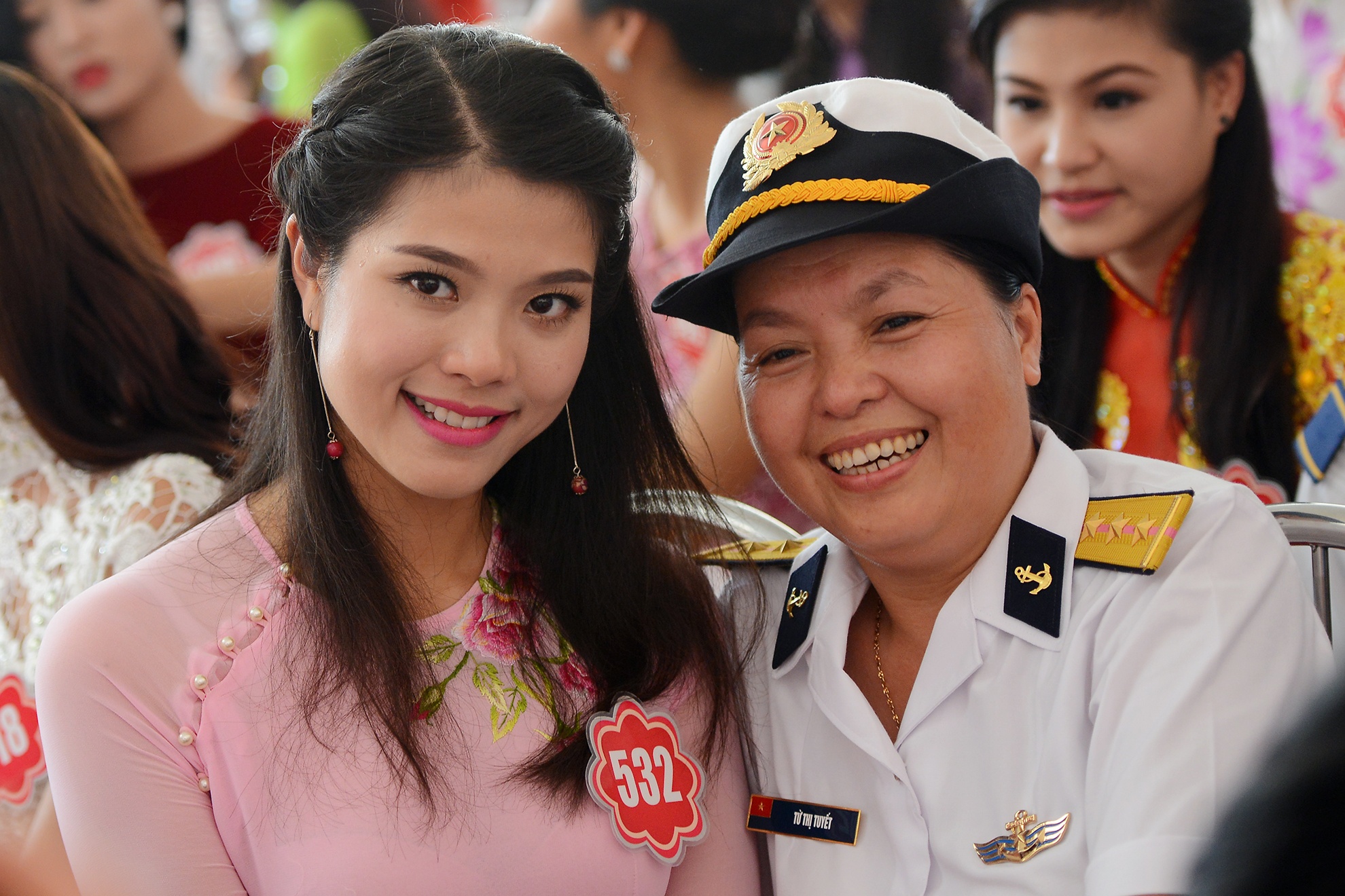 | Hầu hết các chiến sĩ đều không muốn bỏ lỡ cơ hội được chụp ảnh kỷ niệm cùng các thí sinh Hoa hậu. |