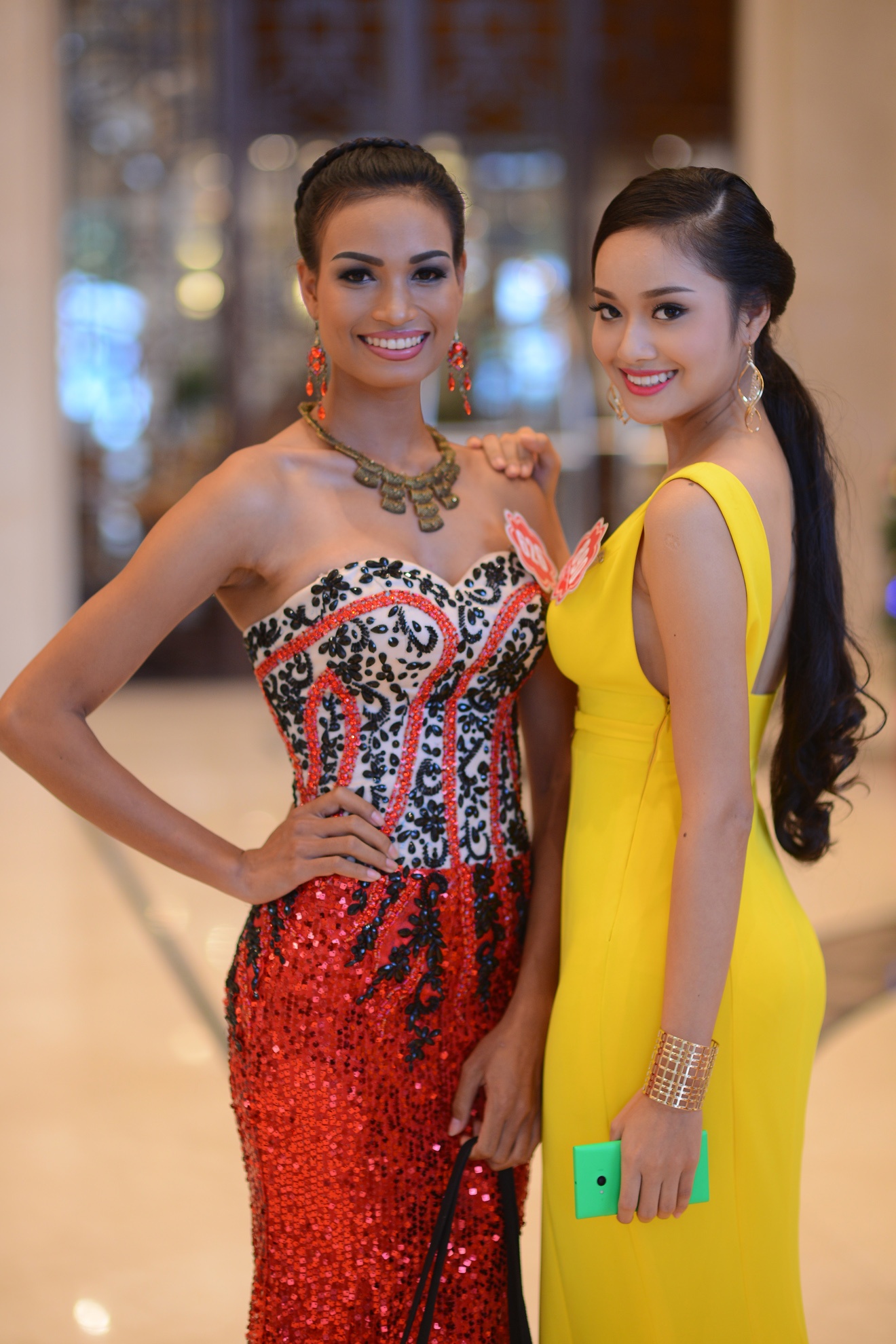 | Từ Cao Thanh Thủy nổi bật với bộ đầm vàng đứng bên "viên ngọc trai" của cuộc thi, H'ăng Niê. |