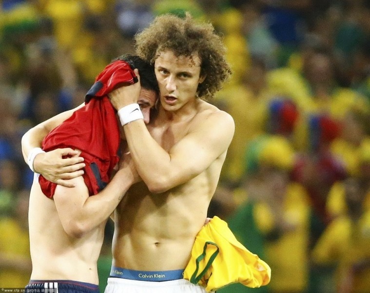 David Luiz (Brazil) cởi áo an ủi đối thủ người Colombia James Rodriguez.