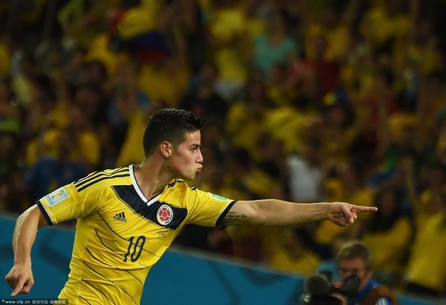 | Ngôi sao số 1 Colombia - James Rodriguez ăn mừng chiến thắng. |