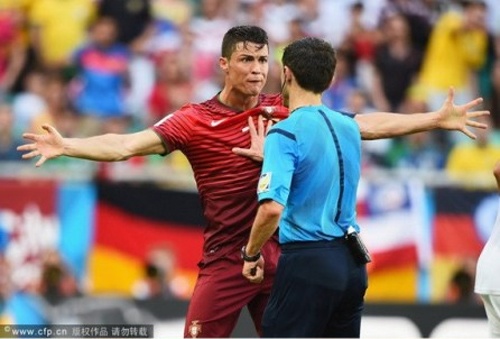 Ronaldo tức giận phản đối quyết định của trọng tài.