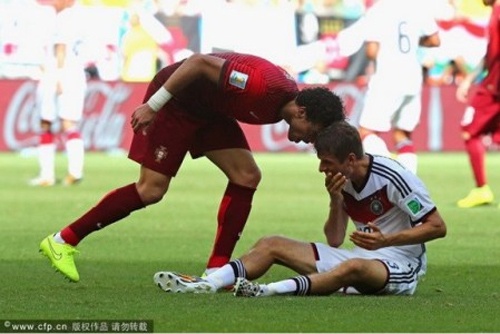 Pepe (Bồ Đào Nha) nổi khùng trước màn ăn vạ của ngôi sao Đức Mueller.