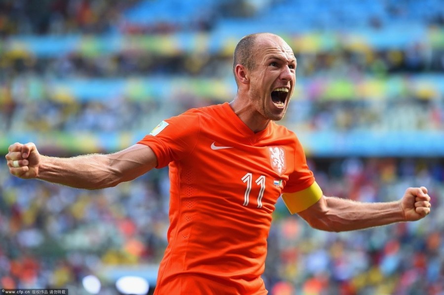 Pha ghi bàn trên không của Robben trong chiến thắng 5-1 trước Tây Ban Nha.
