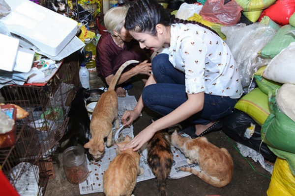 | "Khi Hân xem được những thông tin về cụ Lê Thị Quý trên mạng, Hân cảm thấy rất xúc động và không khỏi xót xa trước hoàn cảnh của cụ. Năm nay đã 80 tuổi, lẽ ra phải được nghỉ ngơi, chăm sóc, quây quần bên con cháu... Vậy mà cụ phải sống một mình và mỗi ngày vẫn phải dậy sớm ra chợ mưu sinh. Hân cũng đặc biệt cảm phục tấm lòng của cụ dành cho những chú chó mèo, loài vật gần gũi với con người này. Ngôi nhà toàn mèo hoang ấy, với một cụ già giàu lòng nhân hậu đã thôi thúc khiến Hân không thể bỏ qua chuyến thăm cụ bà” - cô nói. |