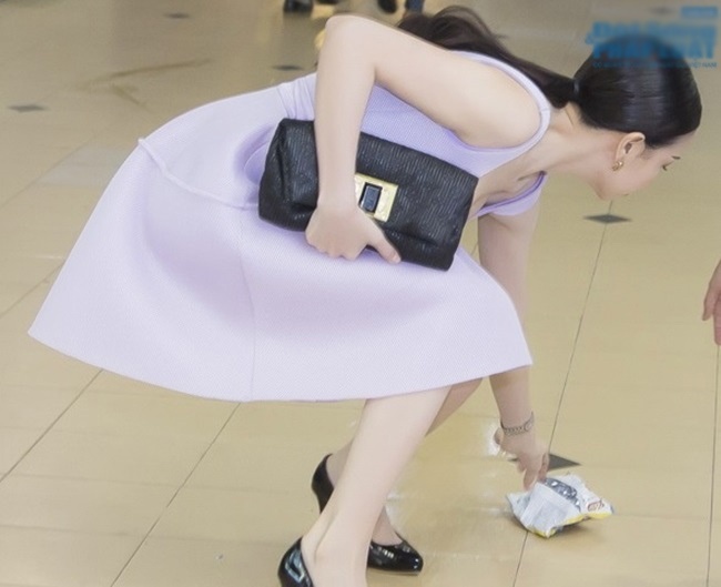 | Vừa xuống sân bay Đà Nẵng, Angela Phương Trinh nhìn thấy vỏ bình nước nằm giữa lối đi, cô đã cúi xuống nhặt lên và bỏ vào thùng rác. Hành động tuy nhỏ của nữ diễn viên đã thu hút sự chú ý của các hành khách có mặt tại đây. Tuy vậy, khi hình ảnh này đăng tải trên mặt báo, bên cạnh những lời khen, vẫn có nhiều ý kiến cho rằng hành động của người đẹp được lên sẵn kịch bản nhằm ghi điểm trước mặt khán giả. |