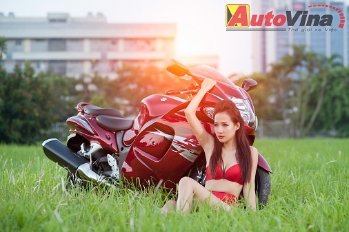 Mẫu xe đỉnh cao với biệt danh “thần gió” Suzuki Hayabusa hấp dẫn hơn nhiều khi đứng cạnh người đẹp với những đường cong hút hồn.