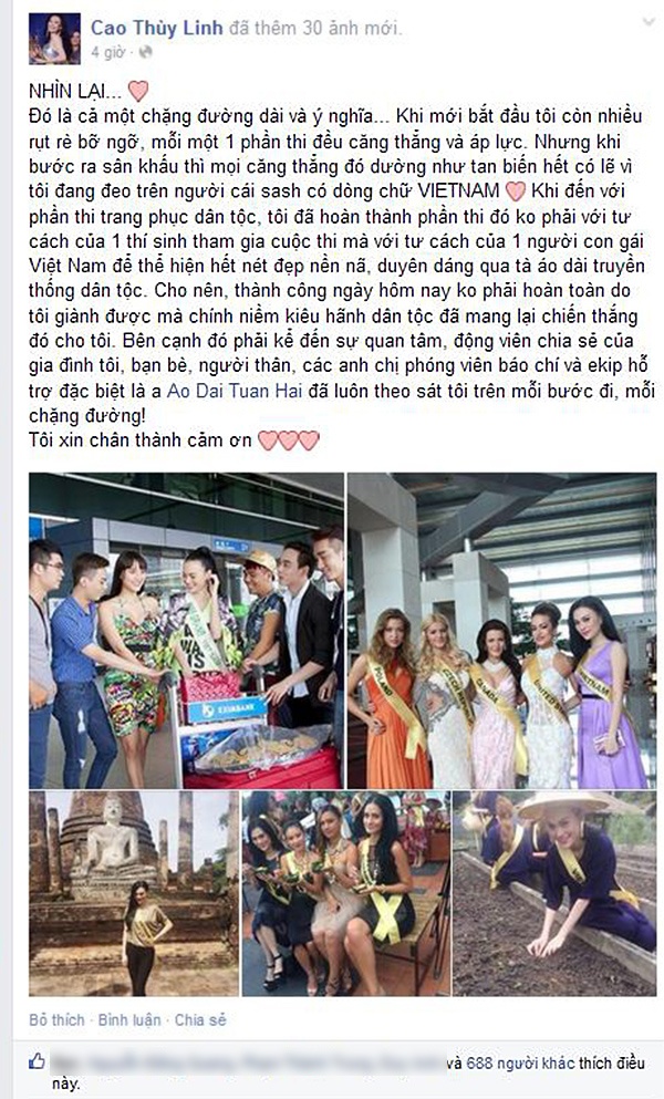 | Người đẹp chia sẻ hành trình dự thi của mình trên trang cá nhân. |
