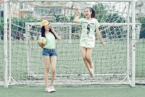 | Tam Triều Dâng - bạn gái tin đồn của Quán quân Gương mặt thân quen Hoài Lâm - thể hiện tình yêu bóng đá bằng bộ ảnh trên sân cỏ. Không nóng bỏng như các đàn chị, Tam Triều Dâng gây ấn tượng mạnh với sự trẻ trung, năng động và đáng yêu. |