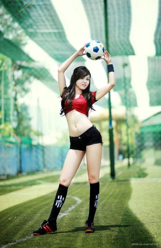 Trong khi đó, Hoa khôi thể thao Lại Hương Thảo lại thể hiện tình yêu bóng đá bằng một bộ ảnh siêu nóng bỏng. Người đẹp xây dựng hình ảnh sexy, gợi cảm nhưng vẫn khỏe khoắn, năng động. Ảnh: Kelvin Nguyễn. |