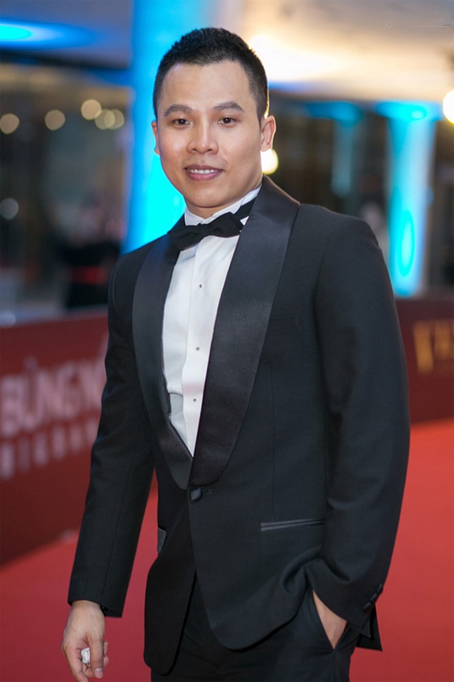 | Ông bầu Vũ Khắc Tiệp - người tổ chức đêm hội - lịch lãm với vest đen. |