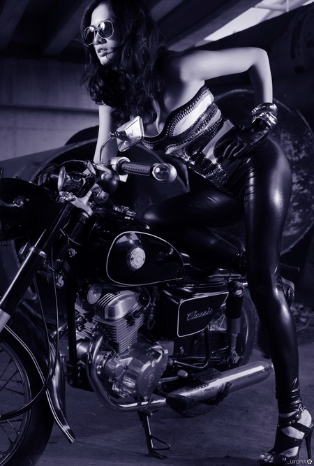 | Trà Ngọc Hằng lả lơi, khêu gợi và đầy khiêu khích bên mô tô. |