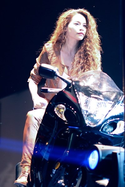 | Xuất hiện trong Ngày hội siêu mô tô, gái một con Hồ Ngọc Hà đã có màn biểu diễn bốc lửa trên mẫu xe nổi tiếng với biệt danh “thần gió” - Hayabusa. |