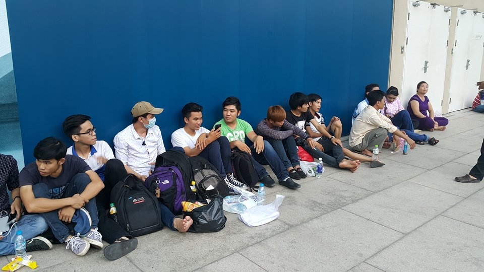 | Cảnh những người đầu tiên chờ mua Galaxy Note 5 tại TP HCM. |