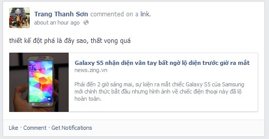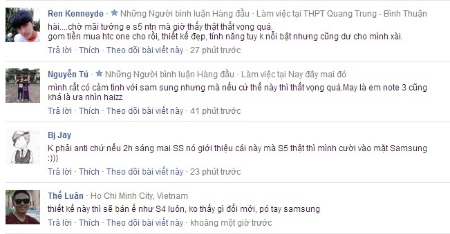 Vài tiếng đồng hồ trước khi sự kiện của Samsung diễn ra, một tài khoản trên Twitter đã đăng hàng loạt ảnh chi tiết thực tế của chiếc Galaxy S5. Nhiều bạn đọc của Zing.vn nói riêng và cộng đồng mạng Việt Nam nói chung tỏ ra thất vọng với thiết kế không mới của siêu phẩm này.