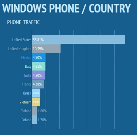 Tính riêng nền tảng Windows Phone, Mỹ và Anh là hai nước có lượng truy cập lớn nhất vào website này. Việt Nam nằm top 10 nước có tỷ lệ truy cập cao nhất, xếp trên Phần Lan và Ba Lan.