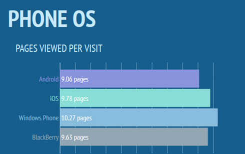 Tuy có % truy cập thấp hơn Android và iOS, nhưng người dùng Windows Phone trung bình mở đến 10,27 liên kết mỗi khi vào web "đen", con số này cao nhất trong số các nền tảng. Điều này đồng nghĩa với việc người dùng Windows Phone tuy thuộc dạng thiểu số (do thị phần vẫn đứng thứ ba toàn cầu), nhưng lại là những người thích thú với nội dung khiêu dâm nhất.