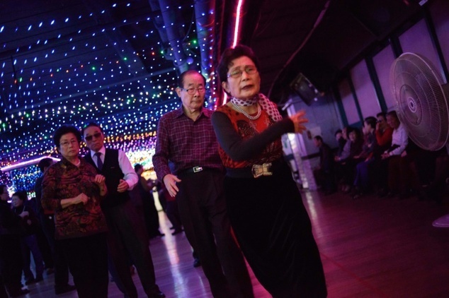 "Tôi đến đây đều đặn, trừ thứ 7 và chủ nhật", ông Jun Il Taek, 81 tuổi, trả lời phóng viên AFP khi đang đung đưa theo tiếng nhạc cùng bạn nhảy. Trong căn phòng tràn ngập những quả bóng lớn và đèn dây trang trí nhiều màu sắc, khoảng 200 thành viên, hầu hết ở độ tuổi trên 70, đang hoà mình theo các điệu khiêu vũ nhẹ nhàng.
