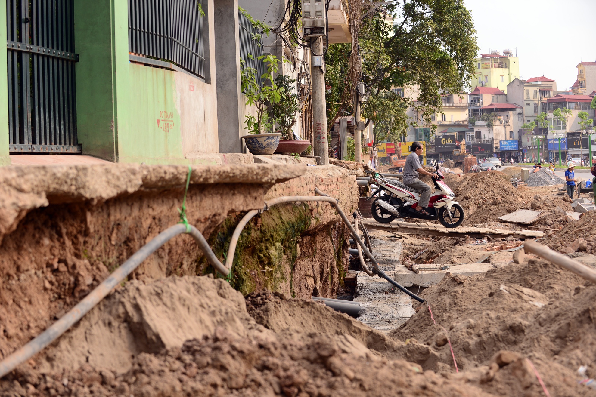 Nhiều đoạn nền nhà cao hơn đường 1-1,2 m, lộ nhiều "hàm cá mập" nguy hiểm.