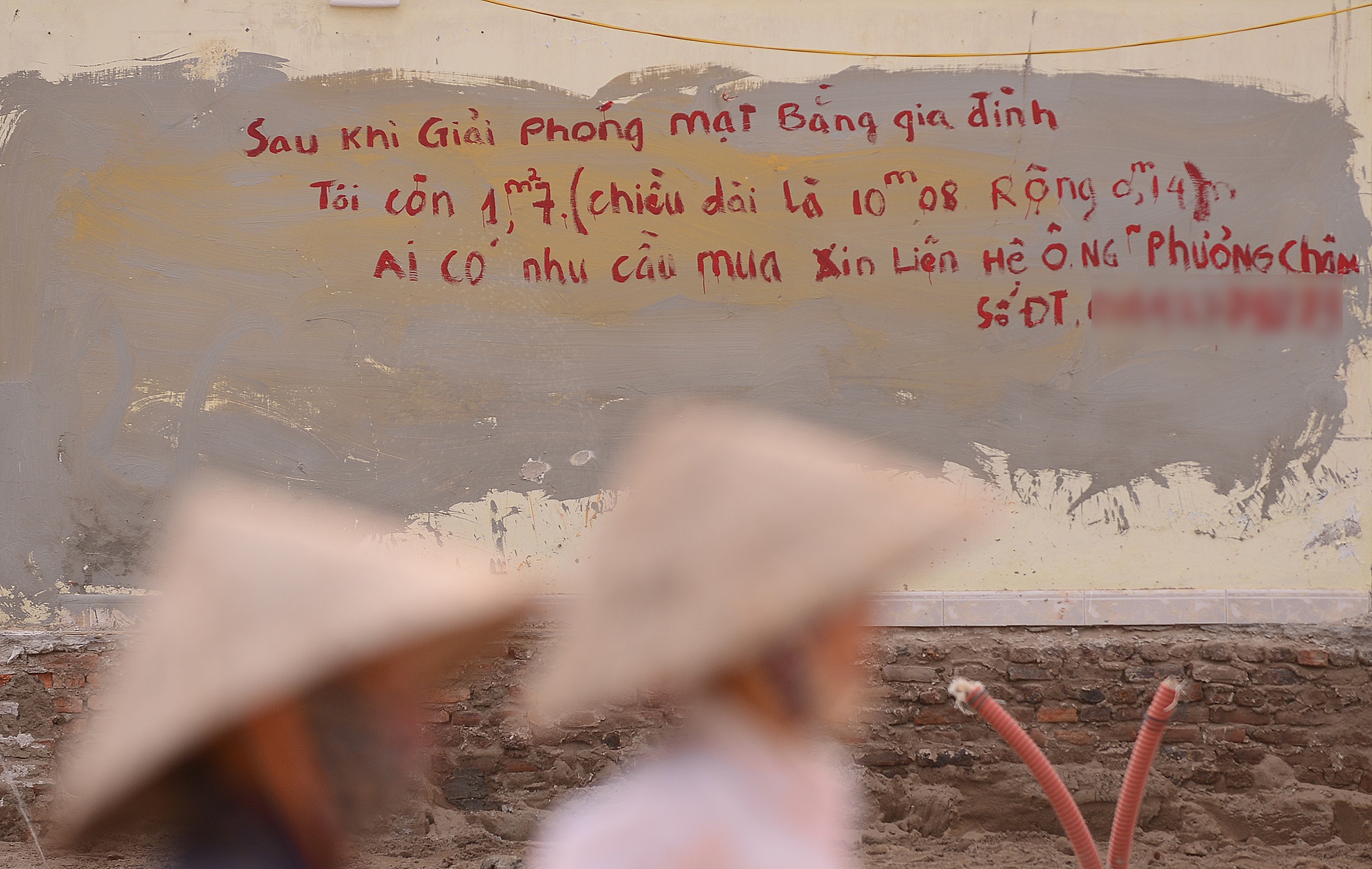 | Một hộ gia đình sau khi bị cắt cụt nhà, chiều rộng chỉ còn 0,14 m đã rao bán đất. |