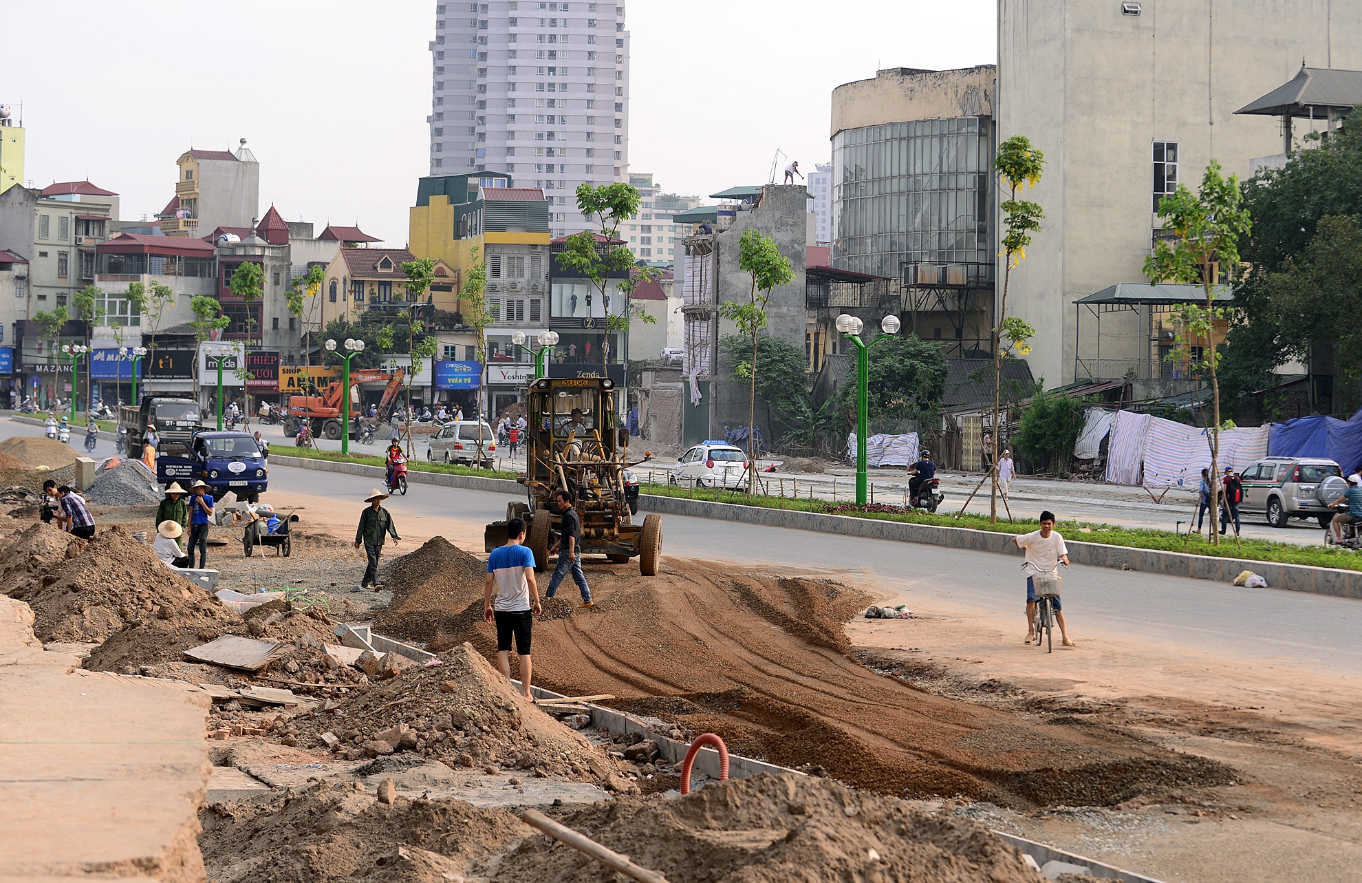 Dự án đường Nguyễn Văn Huyên kéo dài với 565 m, chi phí hơn 969 tỷ đồng đã thông xe kỹ thuật vào dịp Tết Ất Mùi. Tuy nhiên, đến nay, hệ thống vỉa hè, đường ống thoát nước vẫn đang thi công.