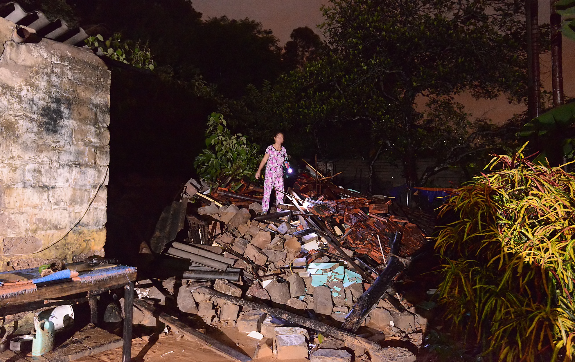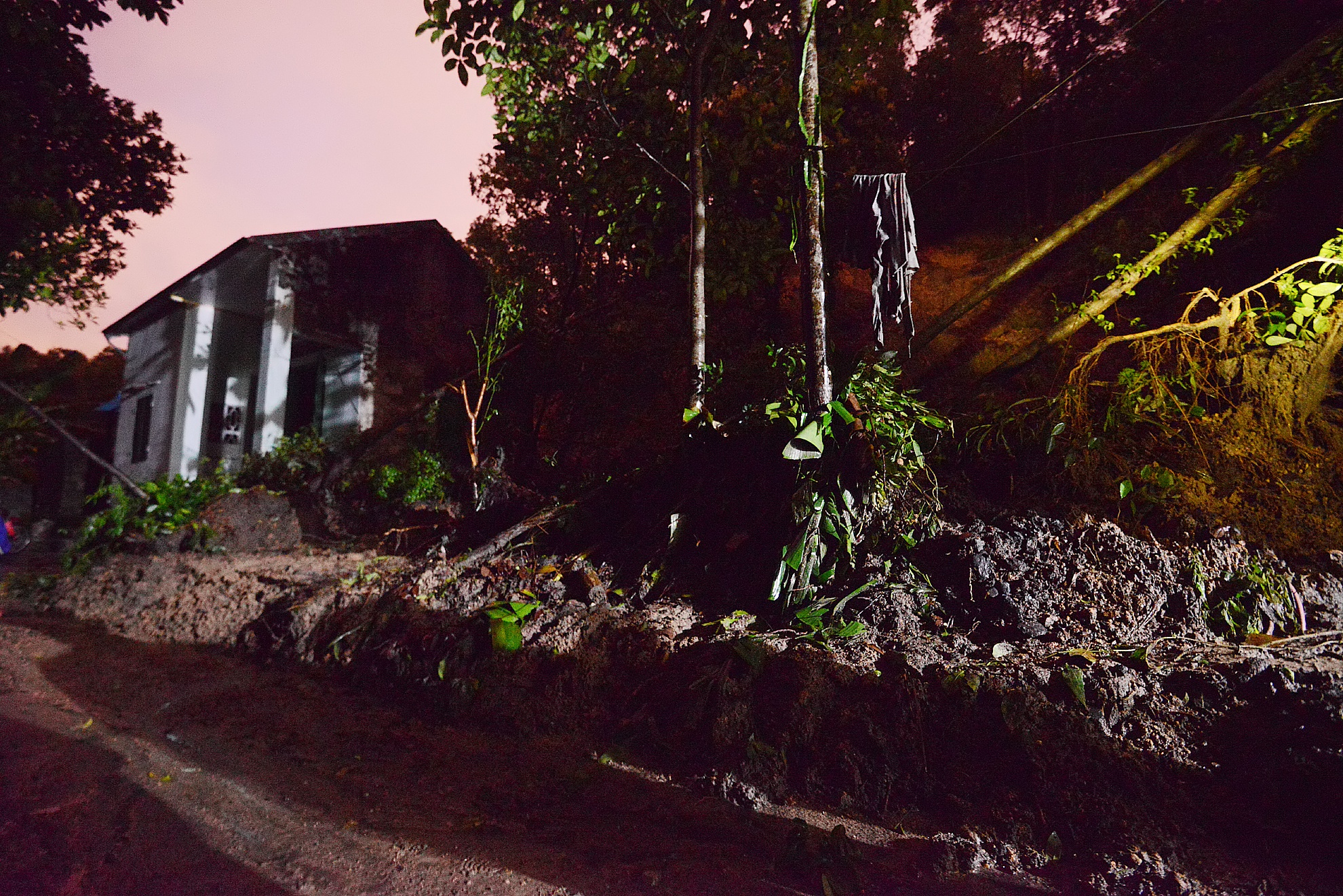 | Nhà chi Hiền nằm trong vùng bị ảnh hưởng do sạt lở. "Hai đêm nay tôi phải dùng đèn dầu đi quanh nhà xem có bị sạt và nứt tường không, tối ngủ cũng không yên, cả nhà như ngồi trên đống lửa", chị than thở. |