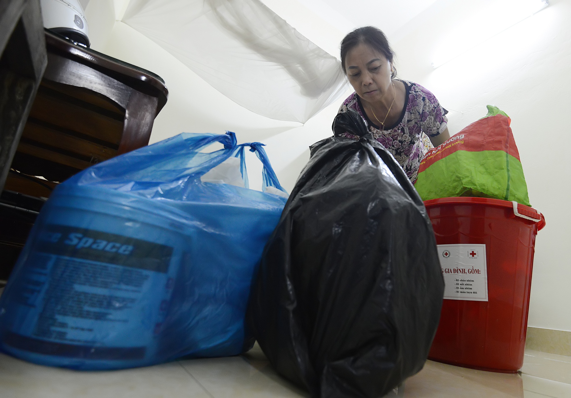 | Những ngày này bà Vinh phải gói ghém đồ đạc sang ở nhờ nhà họ hàng. Quần áo, mì tôm, gạo đều được chuẩn bị đầy đủ để đối phó với mưa lụt. |