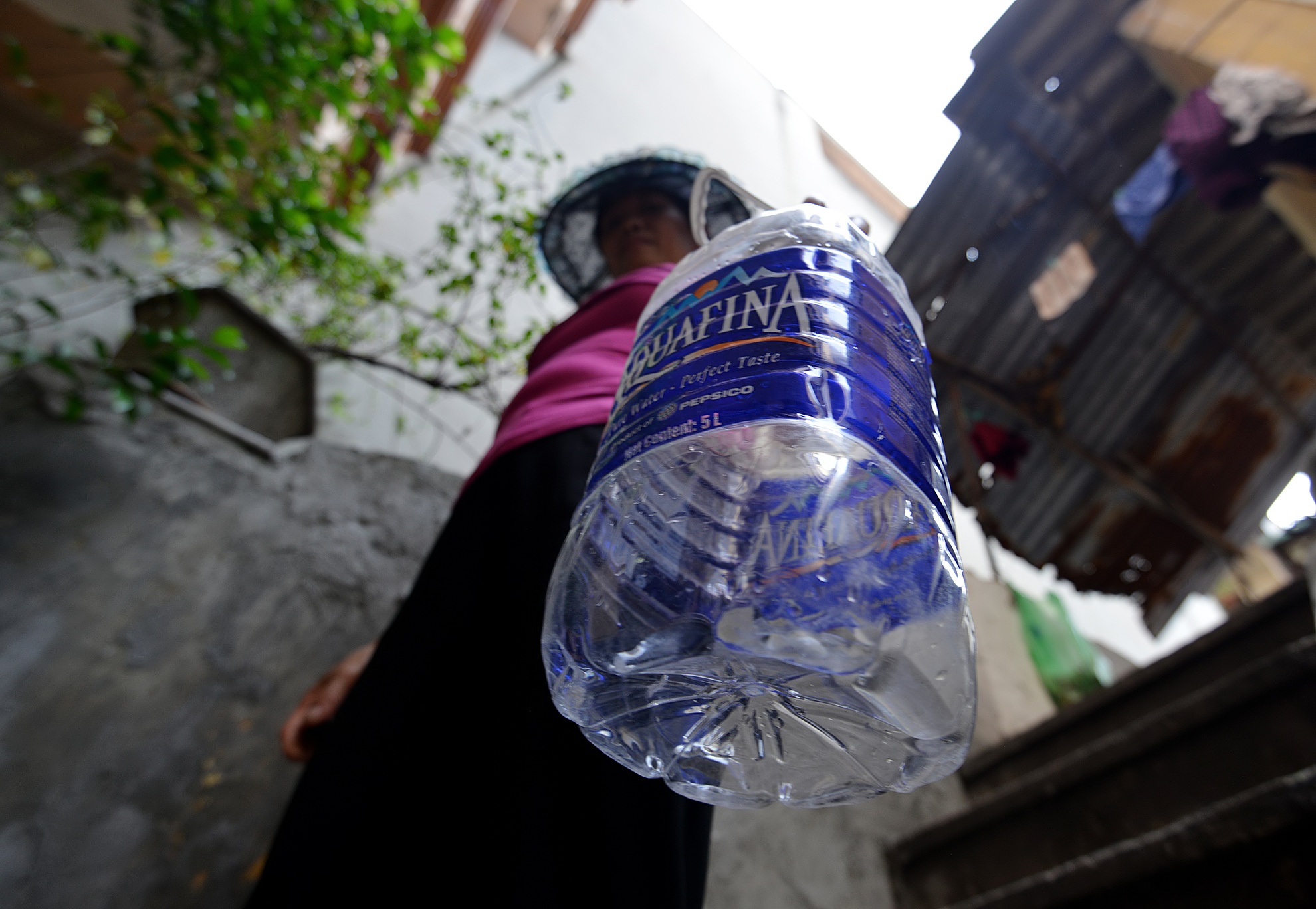 Người dân tận dụng tất cả những đồ dùng trong nhà từ bình nước đến bát to để trữ và đi xin nước sạch.
