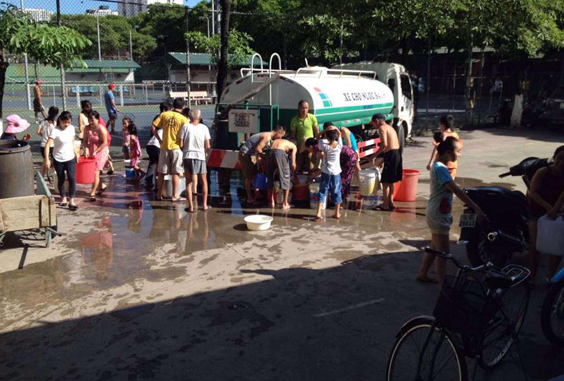 Trước đó ngày 16/8, 3 xe chở nước đến khu vực tổ 1 đến tổ 4 (phường Láng Hạ) để cung cấp. Tuy nhiên với khối lượng không nhiều, tình trạng khan hiếm nước vẫn xảy ra. Ông Nguyễn Anh Việt, Giám đốc Công ty CP Đầu tư và kinh doanh nước sạch Viwaco cho biết, nhiều khu dân cư vẫn chưa có nước sạch. "Do sự cố kéo dài, nhu cầu sử dụng nước của người dân cũng tăng đột biến. Bên cạnh đó, các bể dự trữ của những hộ đầu nguồn đều dùng hết, cần phải có thời gian để chảy đầy".